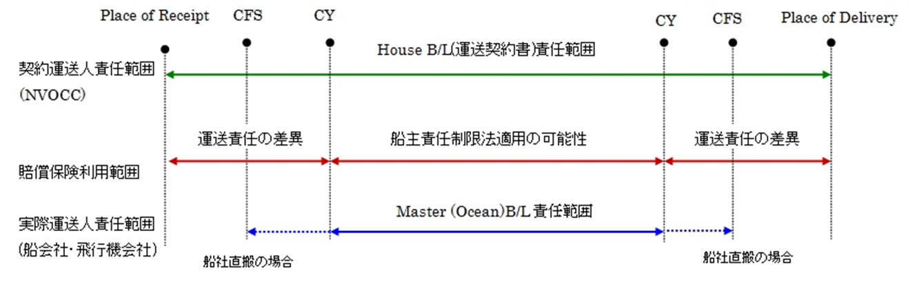 また、パッケージ・リミテーションの適用方法の違いから、運送人(NVOCC)と実際運送人(船会社)の間で任責額に差が生じる場合が発生しています。