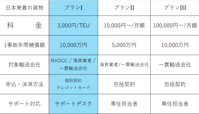 補償対象単位:運送状記載のコンテナ本数(1本(1FEU/TEU)から利用可能)